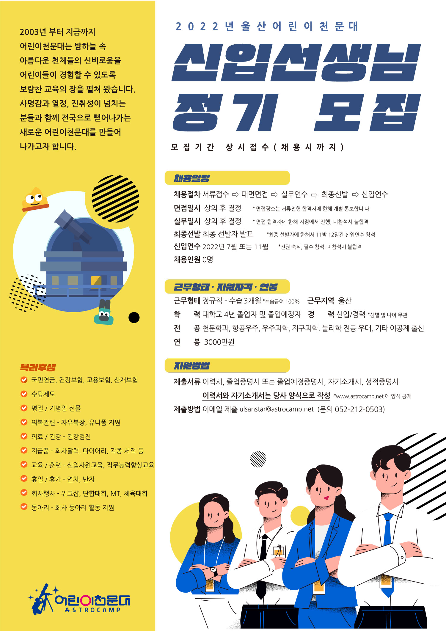 | 2022년 신입선생님 상시모집 공고 [울산어린이천문대] - 마감 | |||||