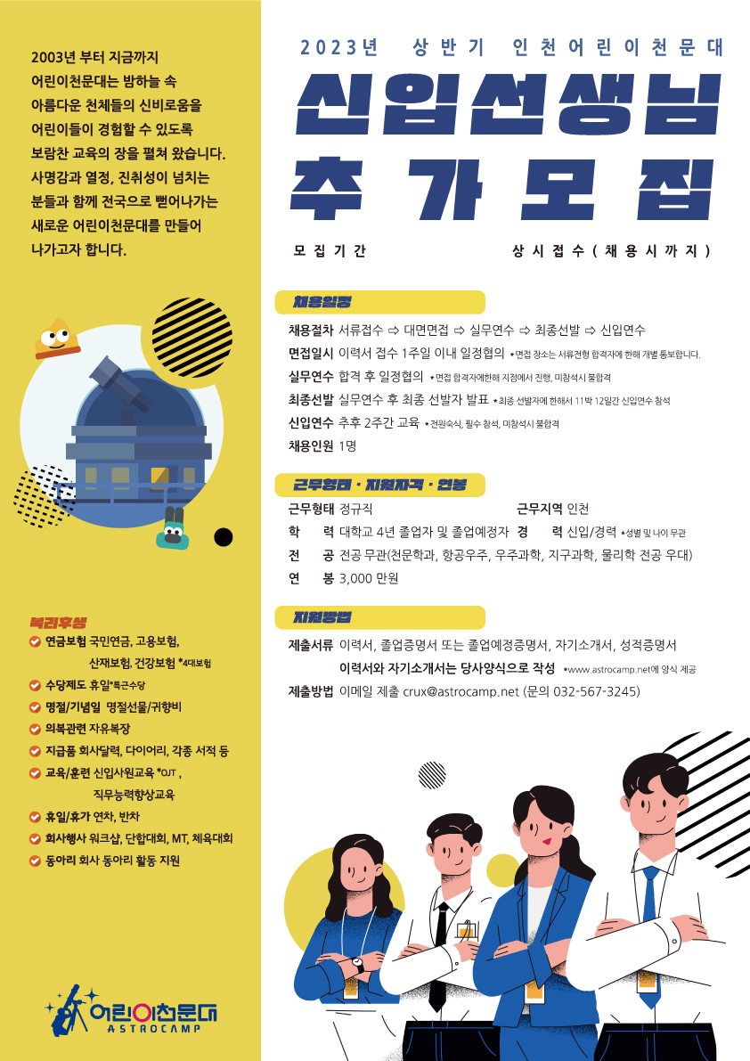 2023년 신입선생님 상시모집 공고 [인천어린이천문대] - 마감