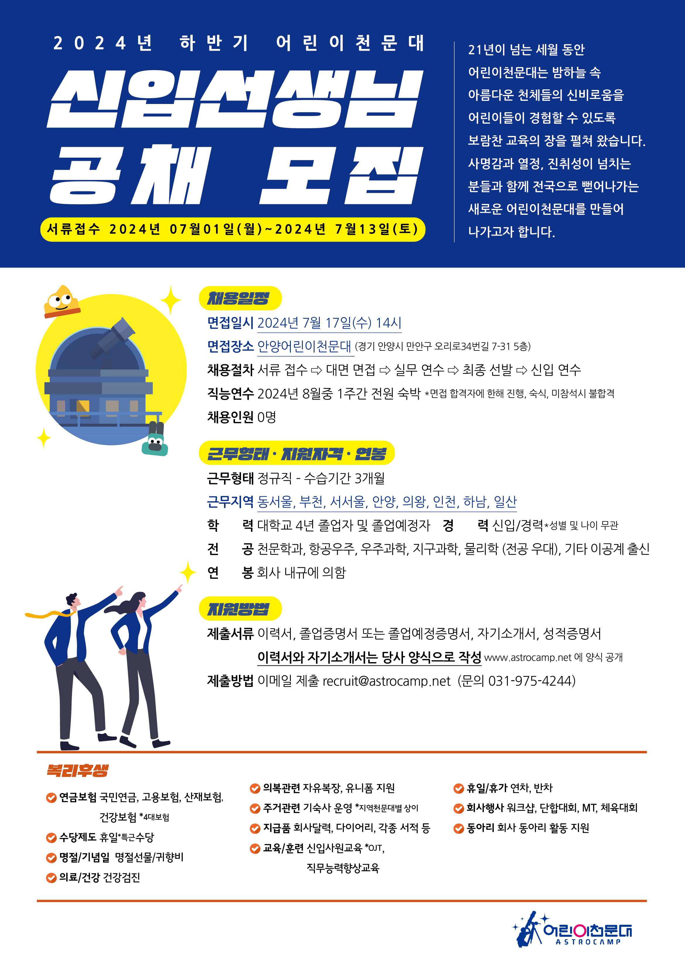 접수 메일 : recruit @astrocamp.net 문의 : 031-975-4244