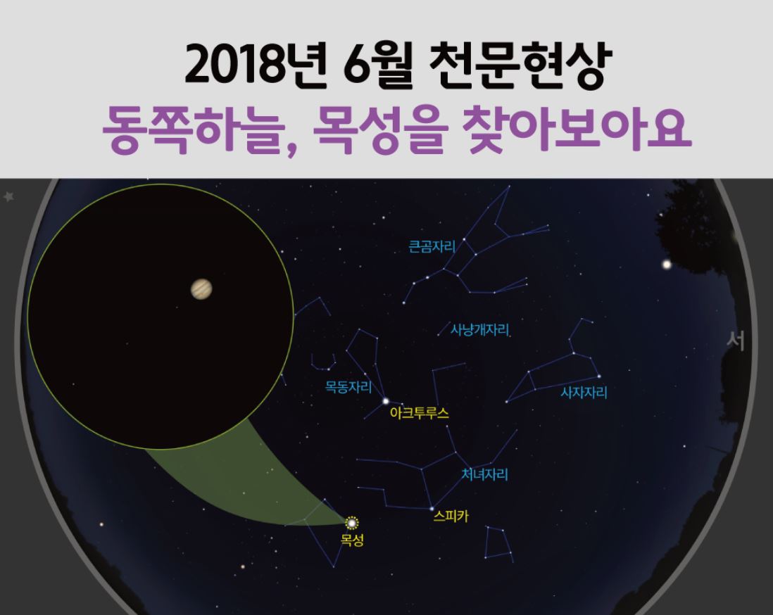 | 2018년 6월 천문현상 - 동쪽하늘, 유난히 밝은 목성을 찾아보아요 | |||||
