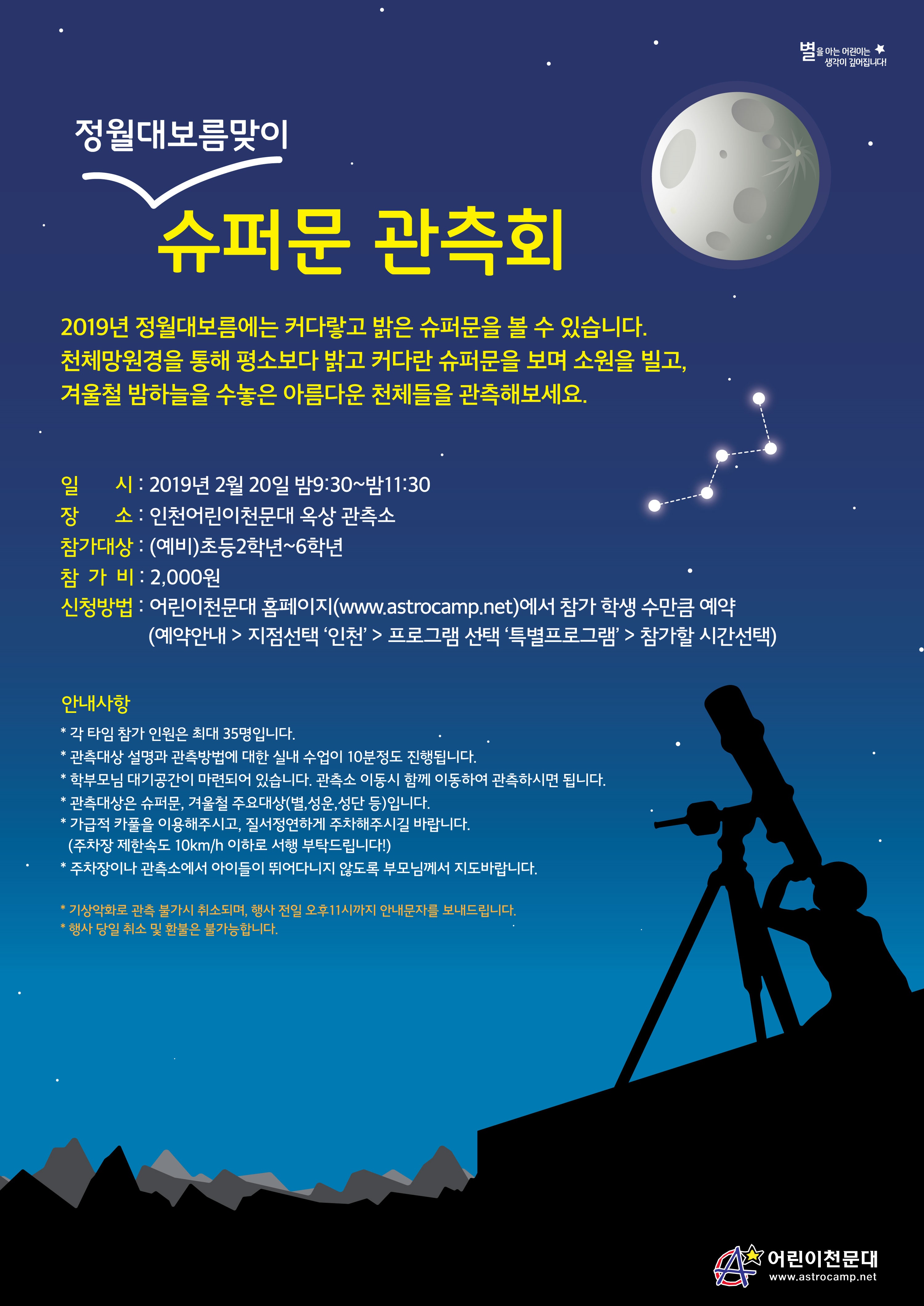 ▶ 슈퍼문 관측회 2019년 2월 20일 (21:30~22:00) 예약 바로가기