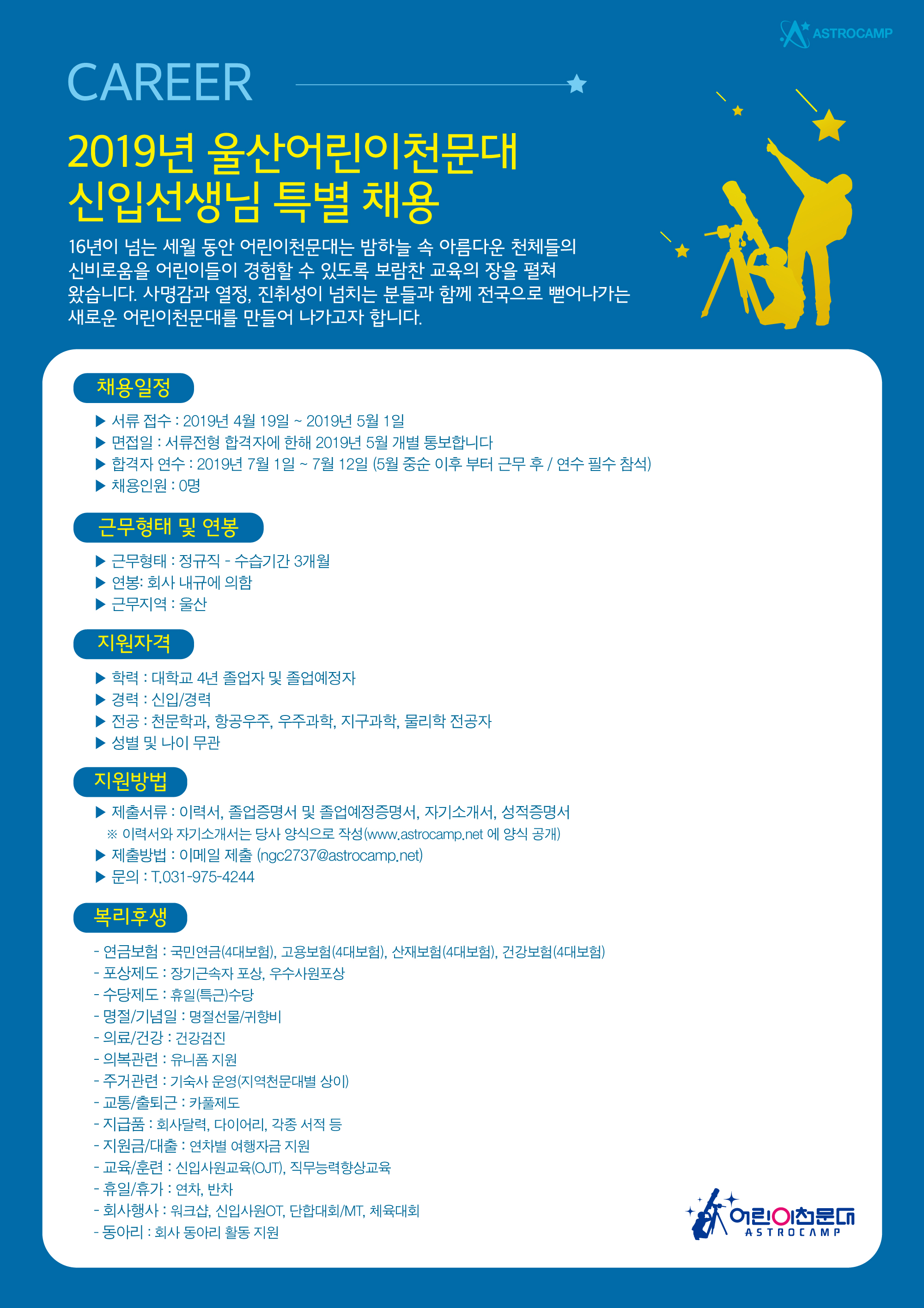 채용담당자: ngc2737@astrocamp.net (상시문의번호: 031-975-4244) |