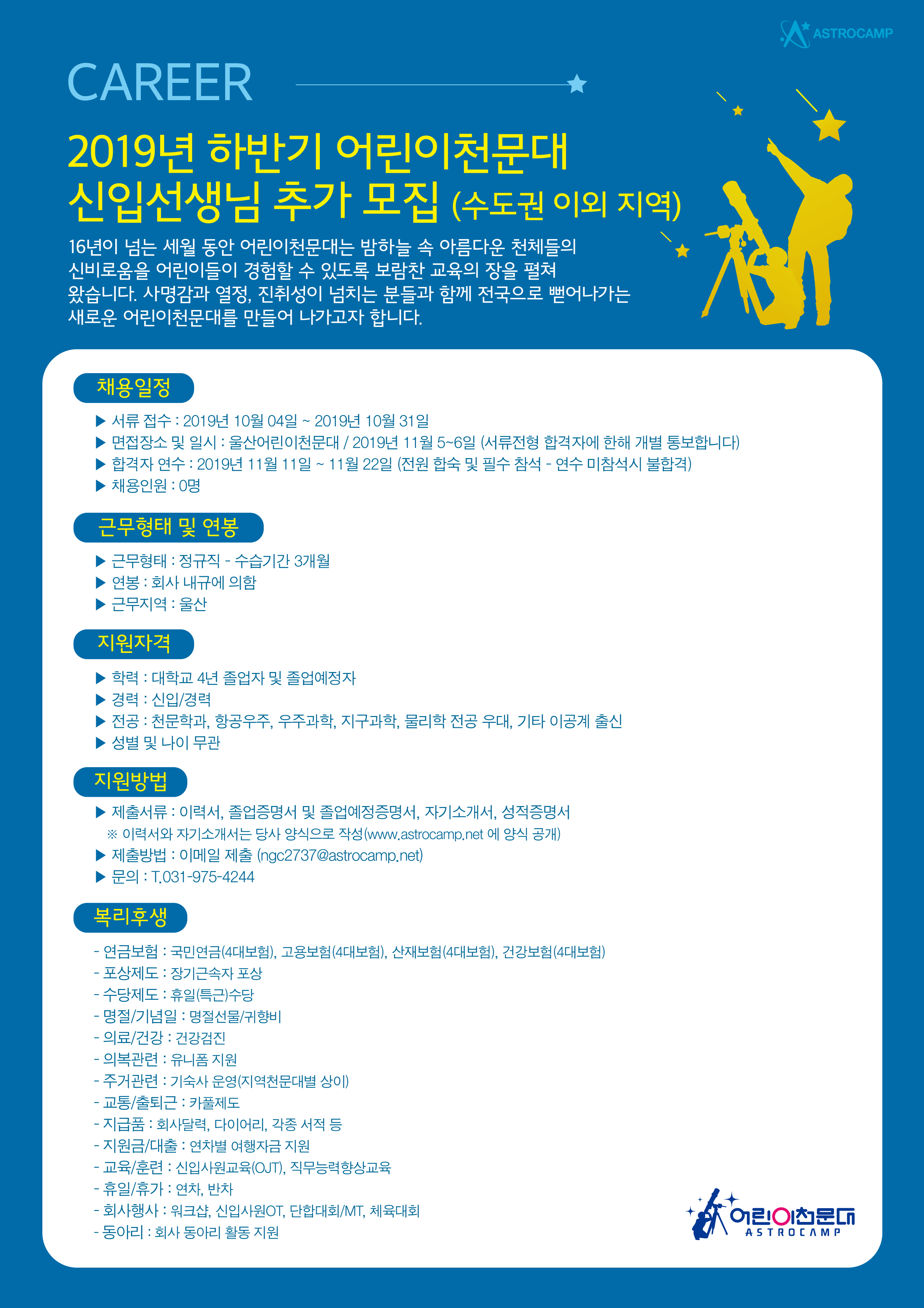 채용담당자: ngc2737@astrocamp.net (상시문의번호: 031-975-4244) |