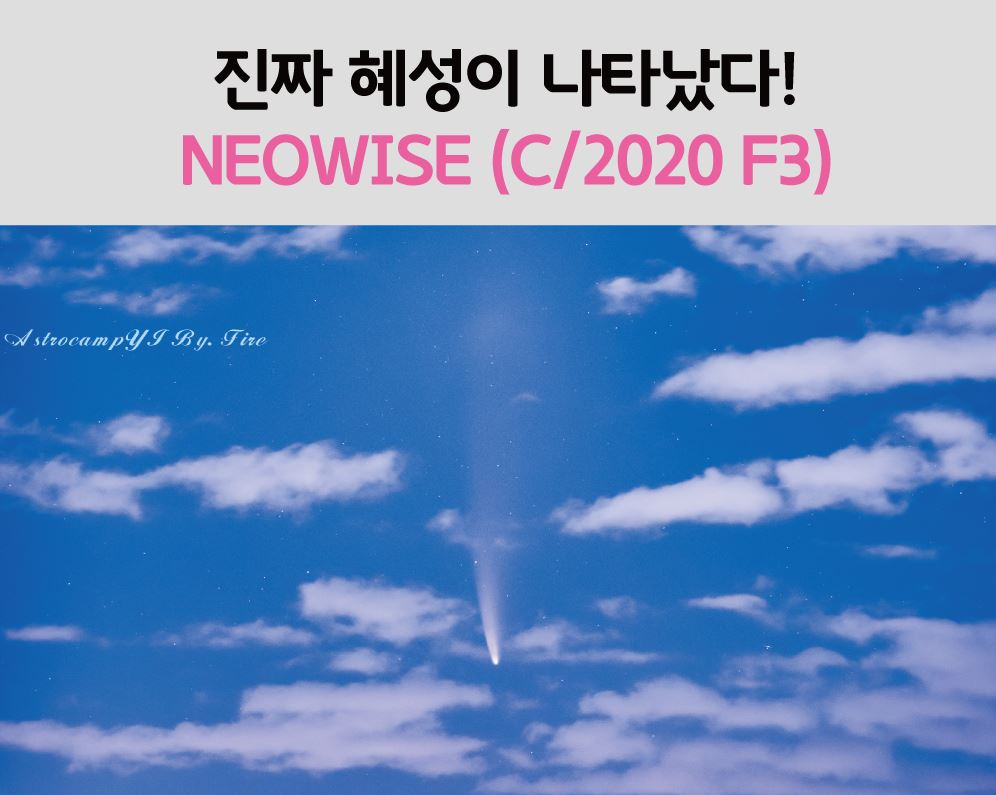 어린이천문대가 끝난 후, 새벽에는 정말 진귀한 천체가 나타났는데요 바로 혜성이랍니다! 아틀라스 혜성은 소멸해 아쉬움만 남겼지만, 이번에 나타난 C/2020 F3, NEOWISE 혜성은 벌써부터 수많은 사진들이 나타나고 있었지요