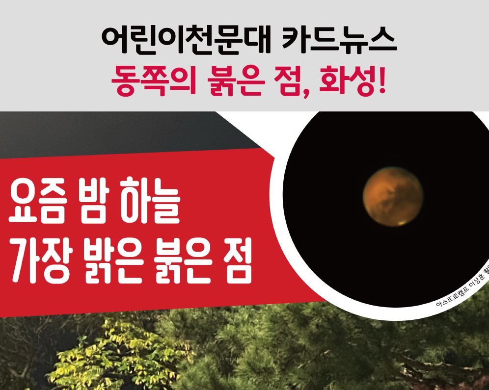 | 파일 | 어린이천문대 카드뉴스 _ 동쪽의 붉은 점, 화성.JPG(108.1K) | ||||