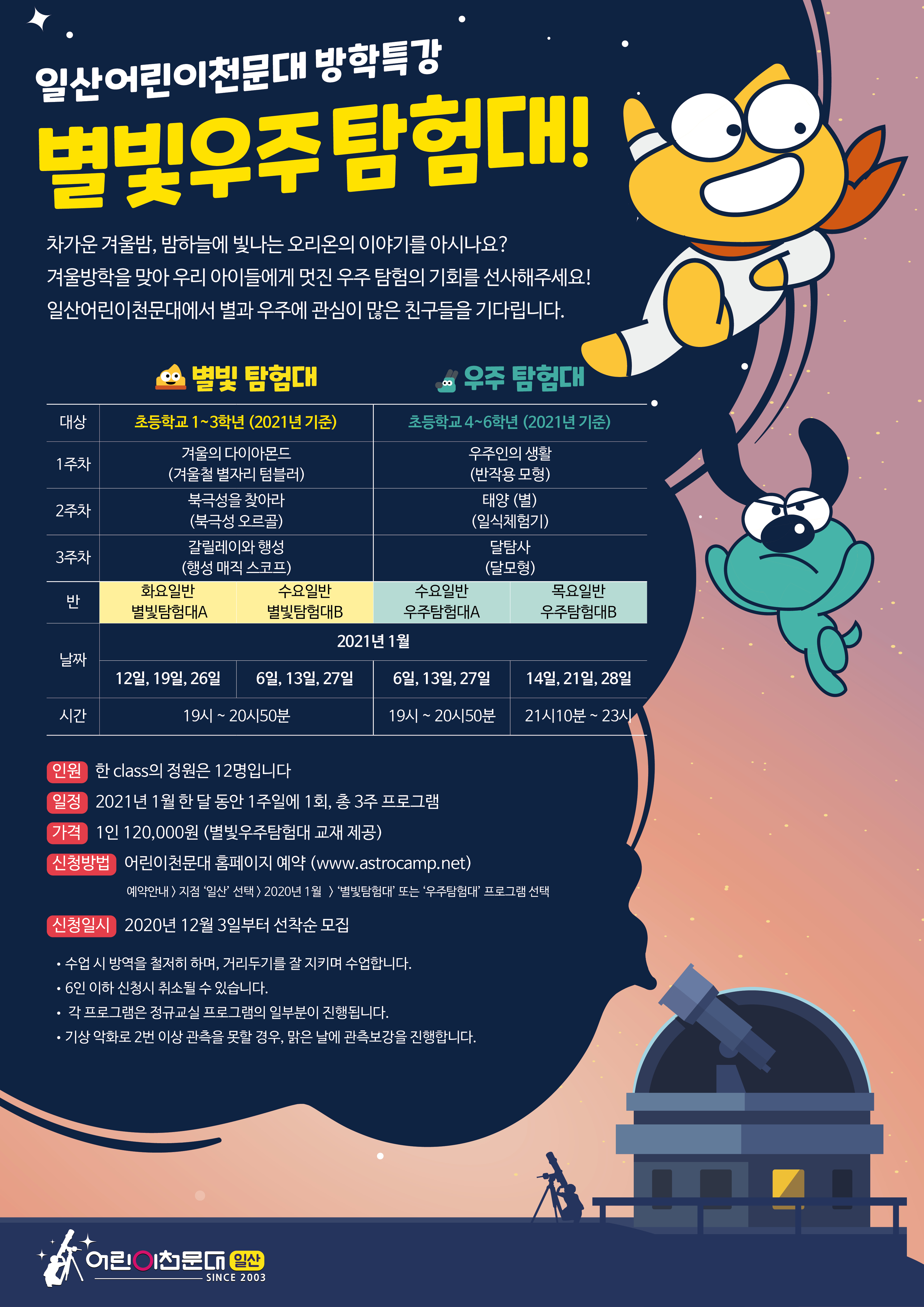 [일산어린이천문대] 별빛ㆍ우주탐험대 모집안내