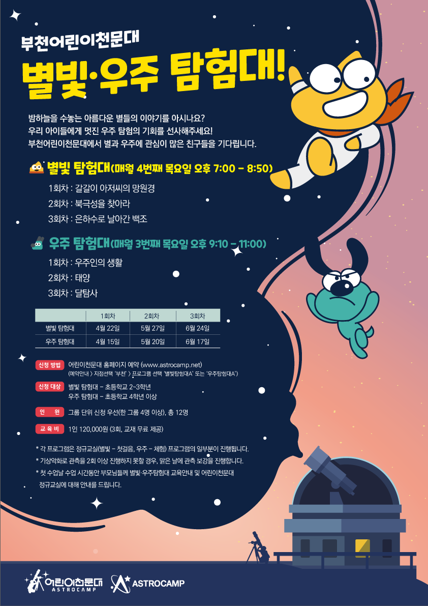 [부천어린이천문대] 별빛ㆍ우주탐험대 모집안내