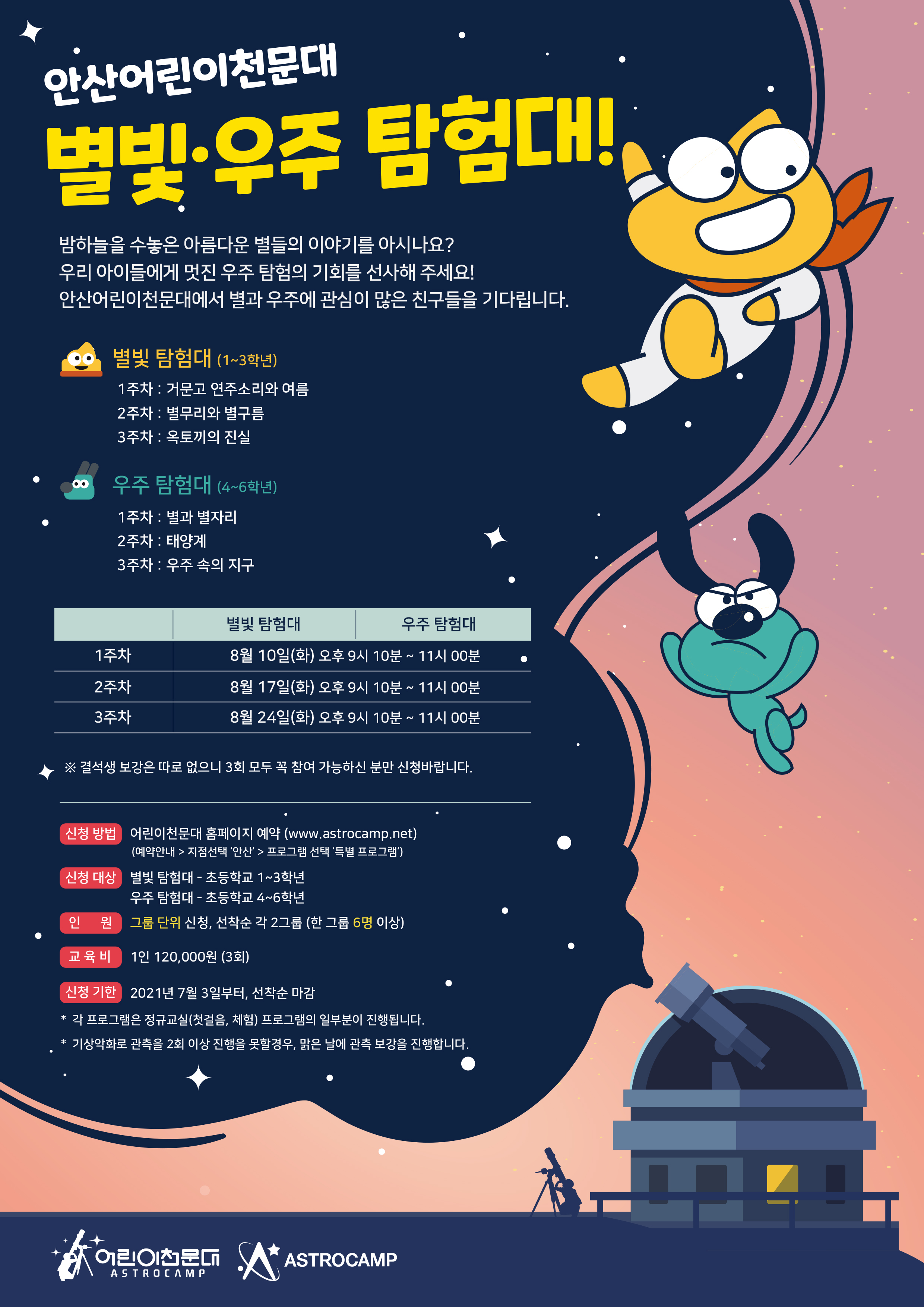 [안산어린이천문대] 별빛ㆍ우주탐험대 모집안내