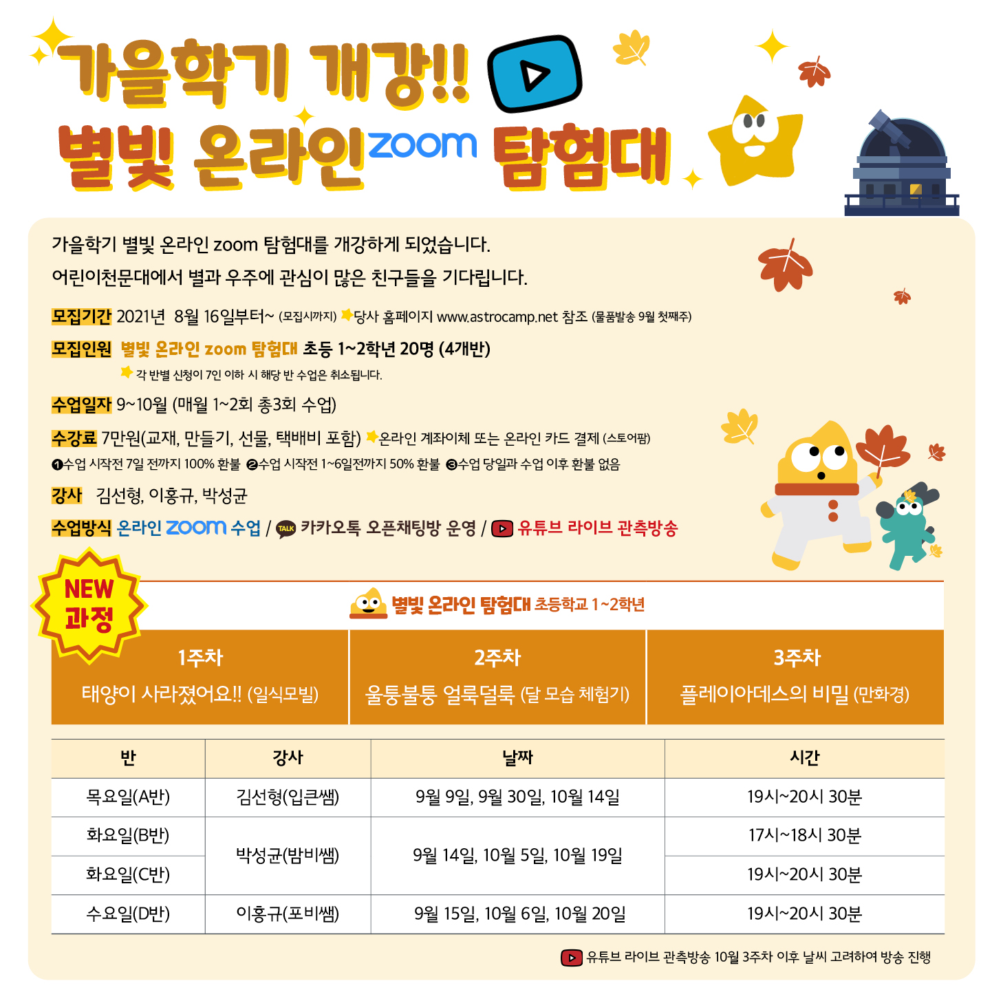 [가을학기] 별빛 온라인 ZOOM 탐험대 신청안내