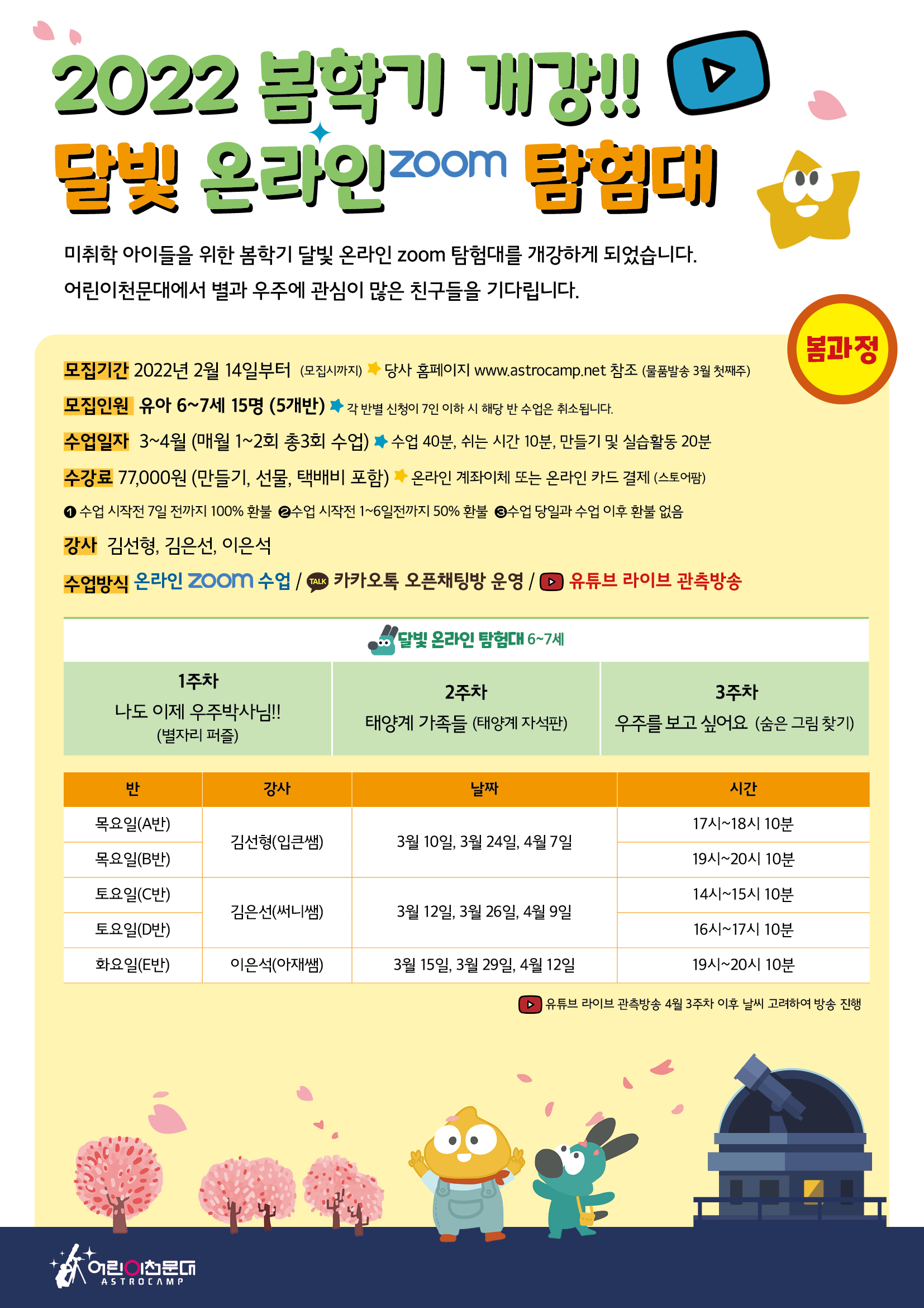 [봄학기] 별빛 온라인 ZOOM 탐험대 신청안내