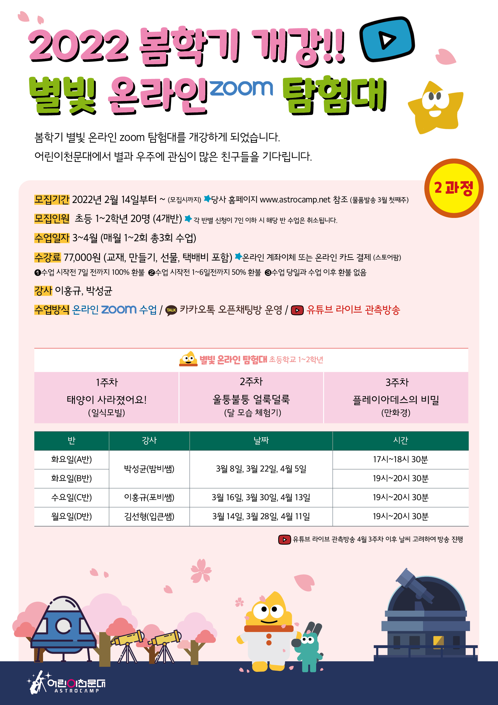 [봄학기] 별빛 온라인 ZOOM 탐험대 신청안내
