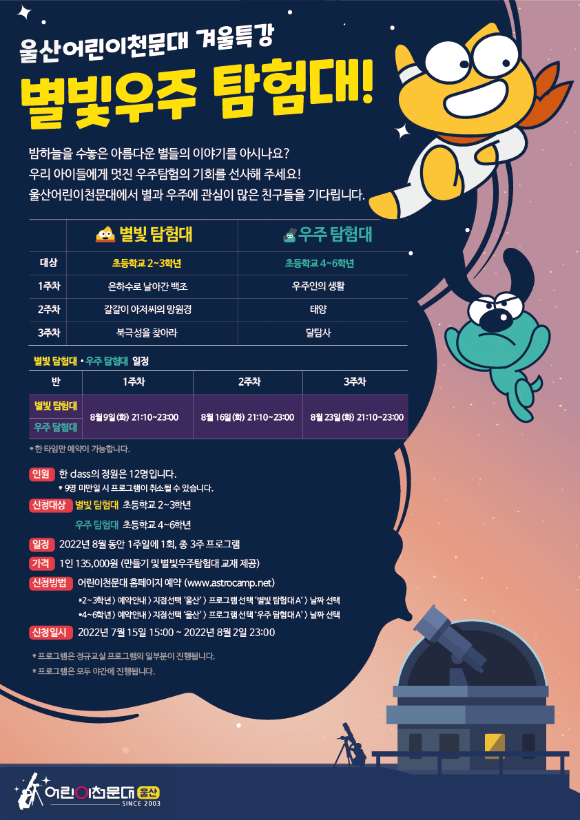 [울산어린이천문대] 별빛ㆍ우주탐험대 모집안내