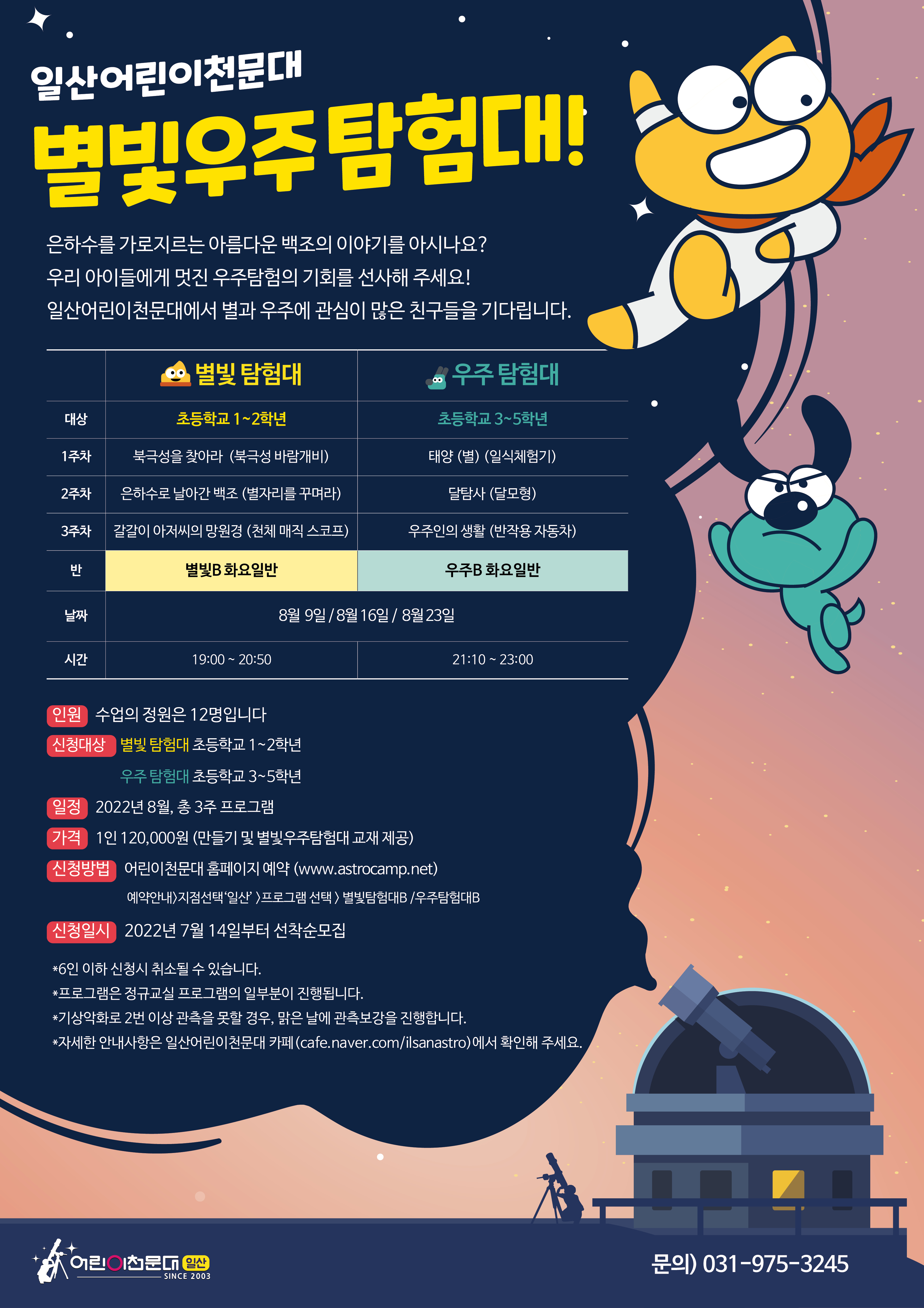 ※ 자세한 상담 및 문의는 일산어린이천문대 (031-975-3245)로 연락주시기 바랍니다. ※ 예약신청은 선착순으로 진행됩니다.