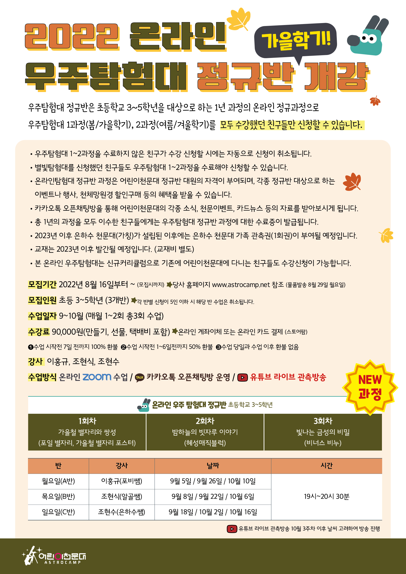 [가을학기] 별빛 온라인 탐험대 정규과정 신청안내