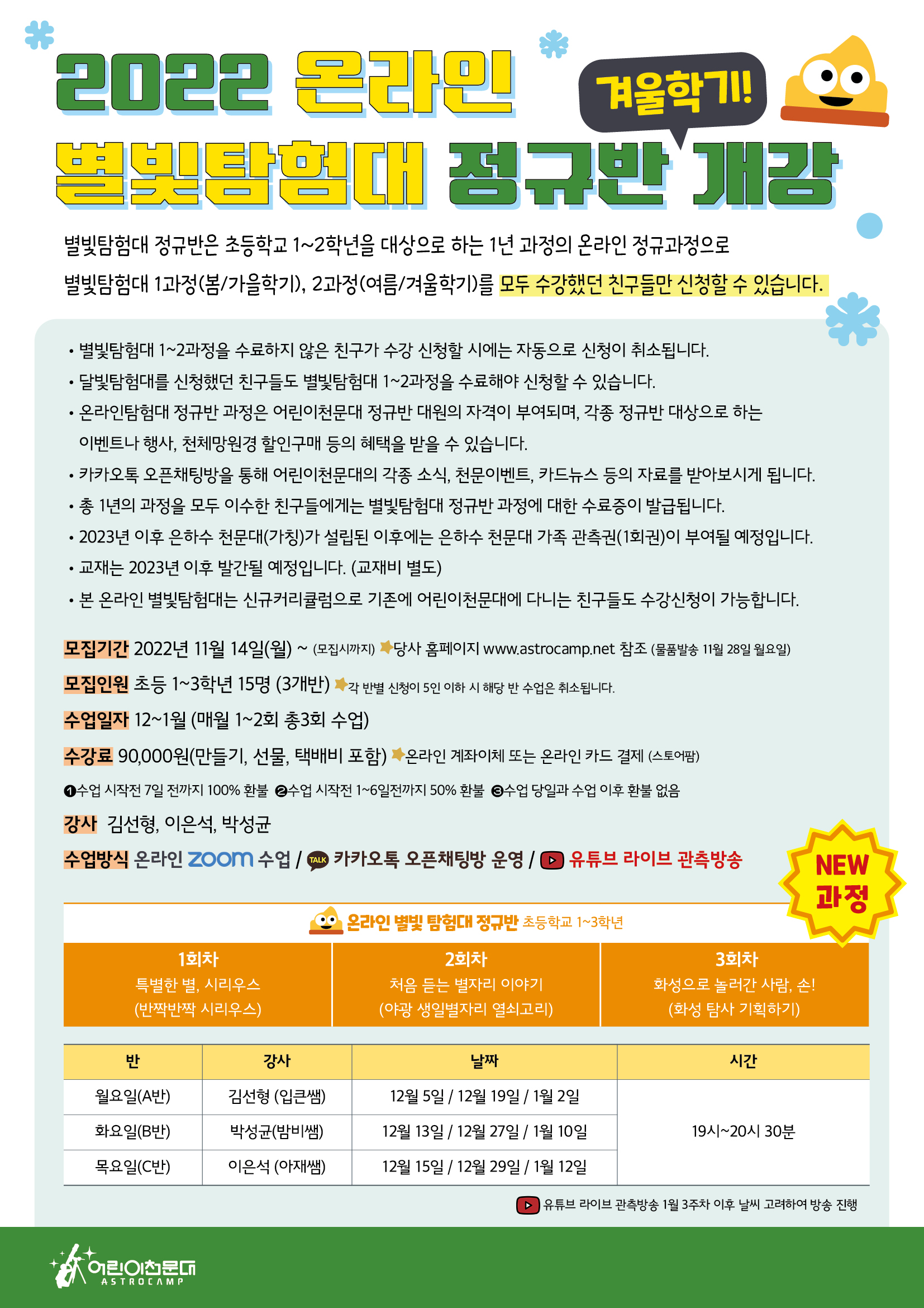 | [겨울학기] 별빛 온라인 탐험대 정규과정 신청안내 | |||||