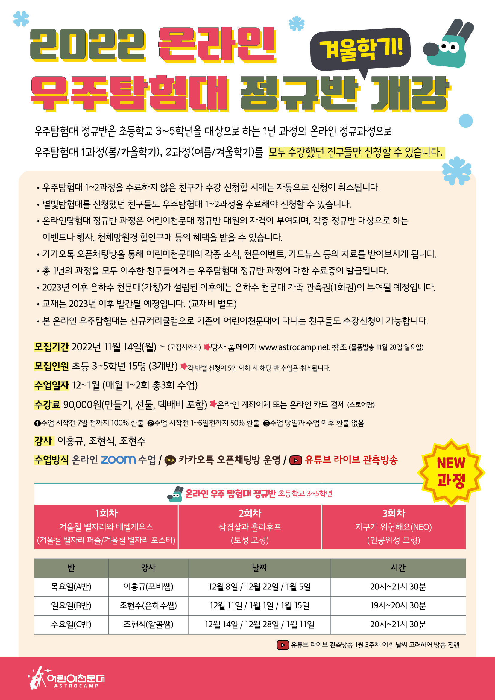 | [겨울학기] 우주 온라인 탐험대 정규과정 신청안내 | |||||