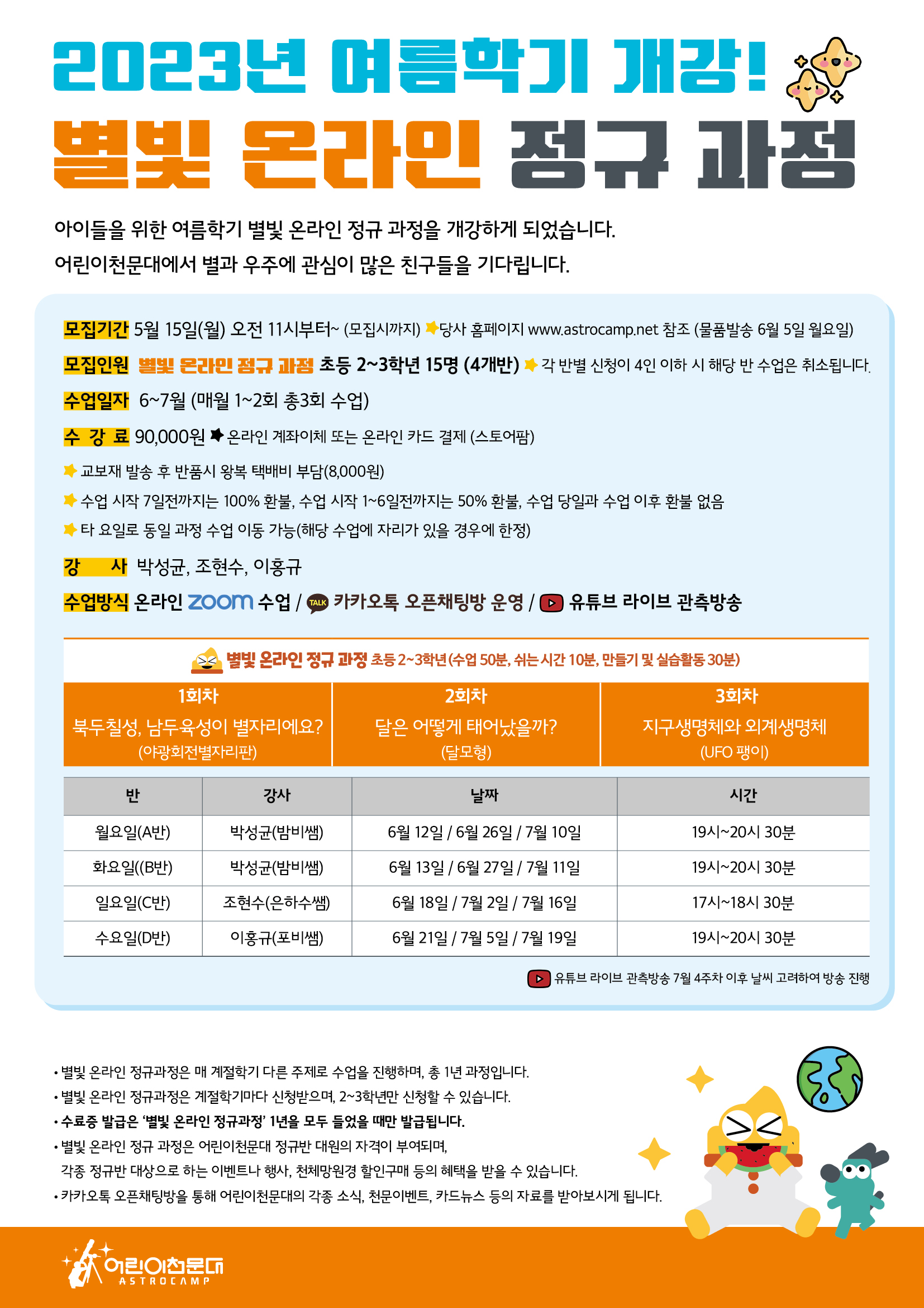 [여름학기] 별빛 온라인 정규과정 신청안내