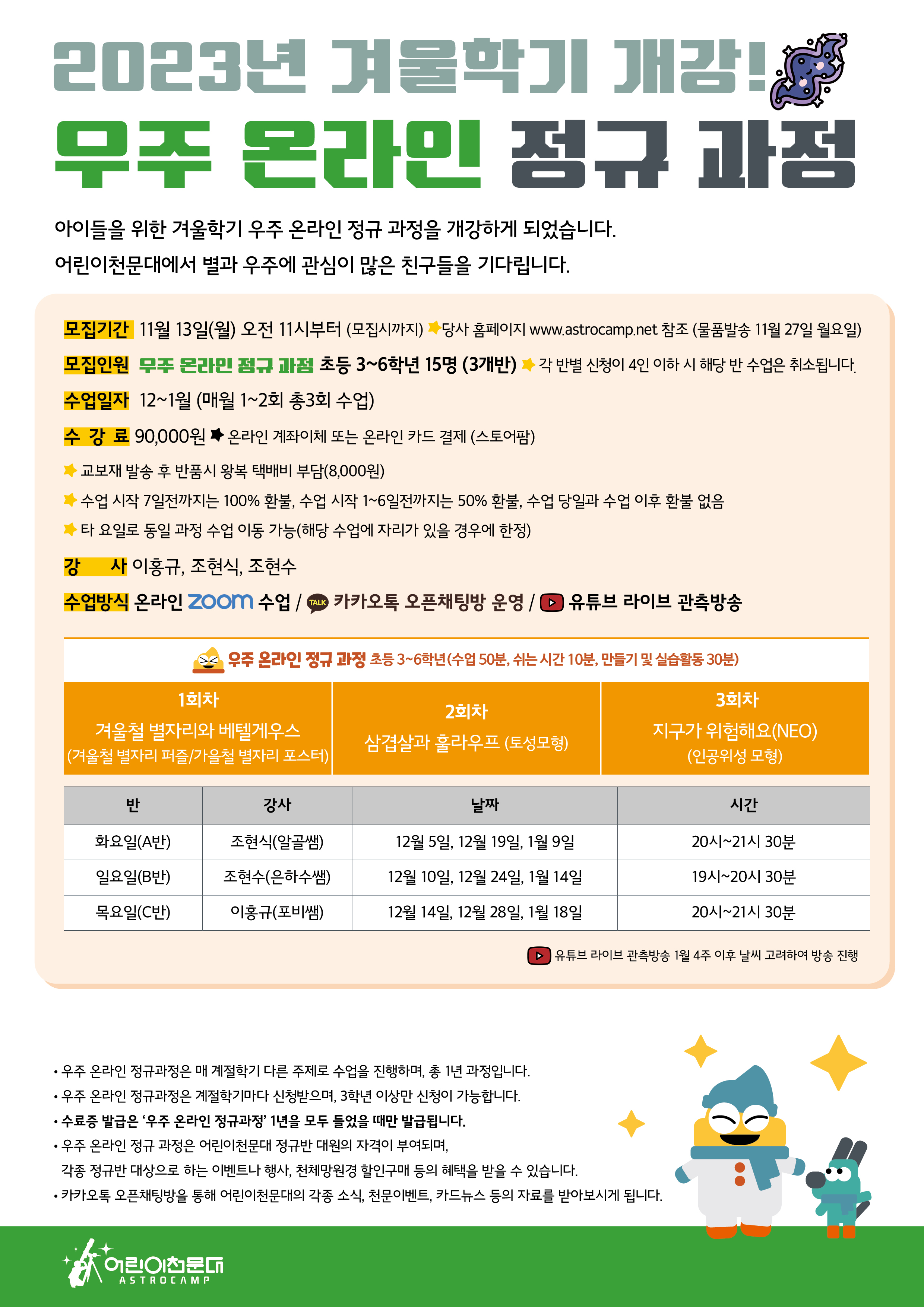 [겨울학기] 별빛 온라인 정규과정 안내