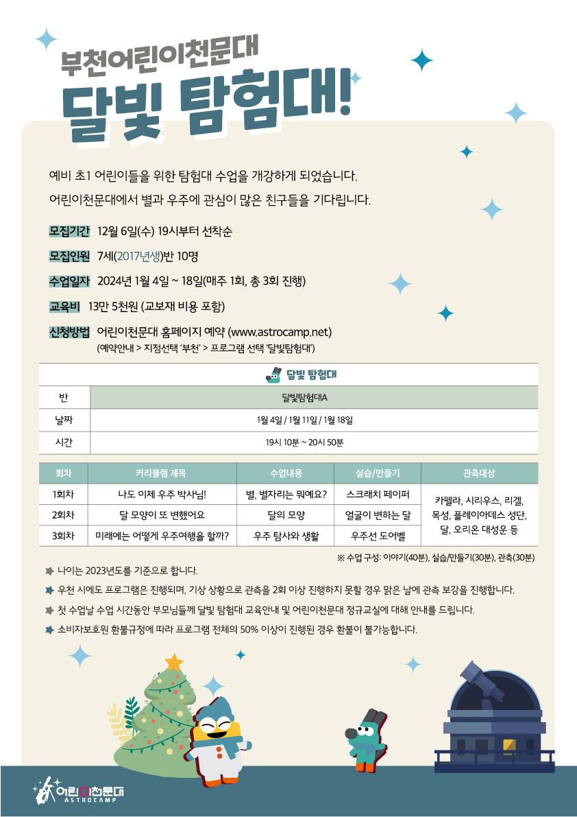 [부천 어린이천문대] 별꿈이 과정 모집안내(2월개강)
