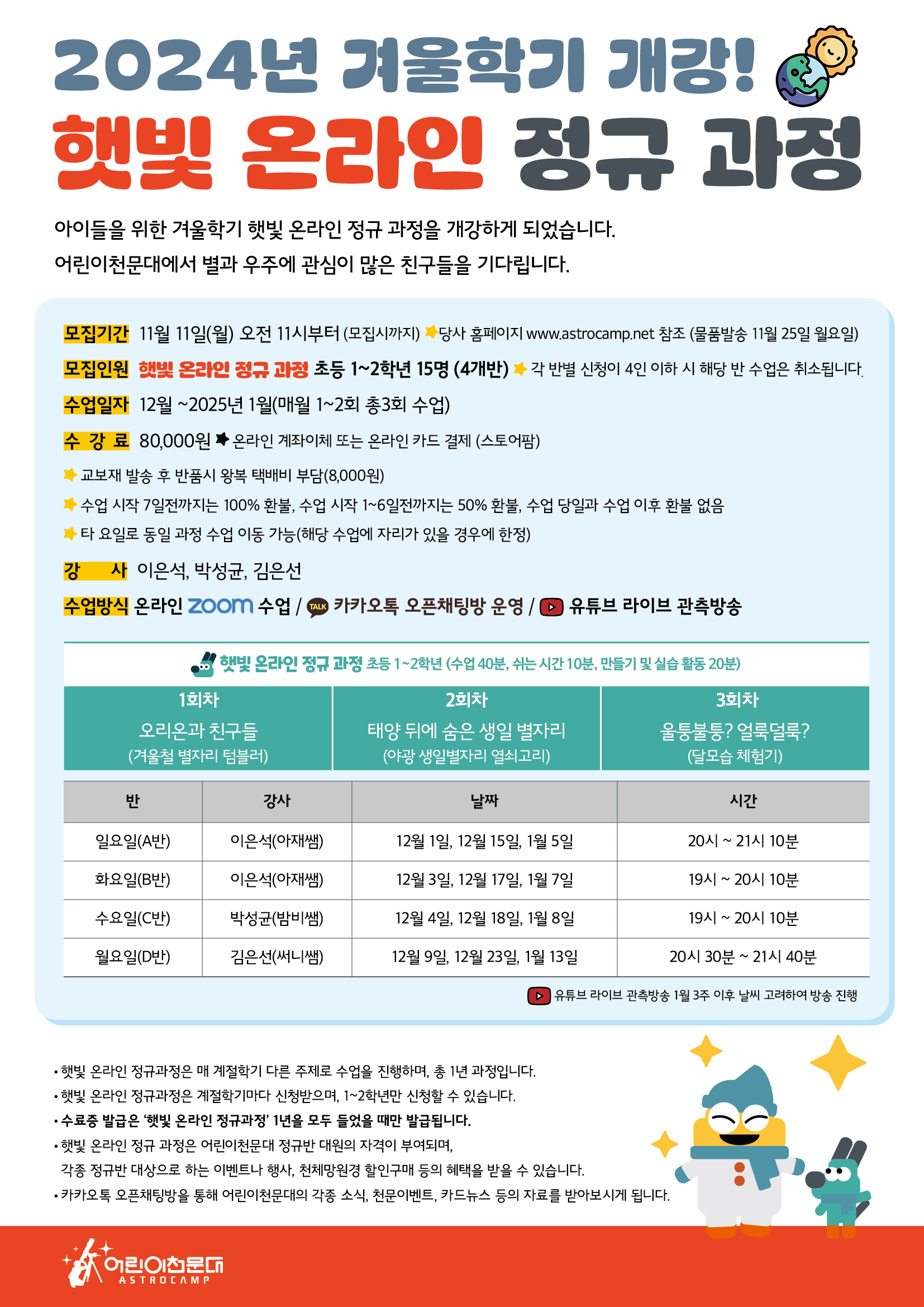 [겨울학기] 별빛 온라인 정규과정 안내