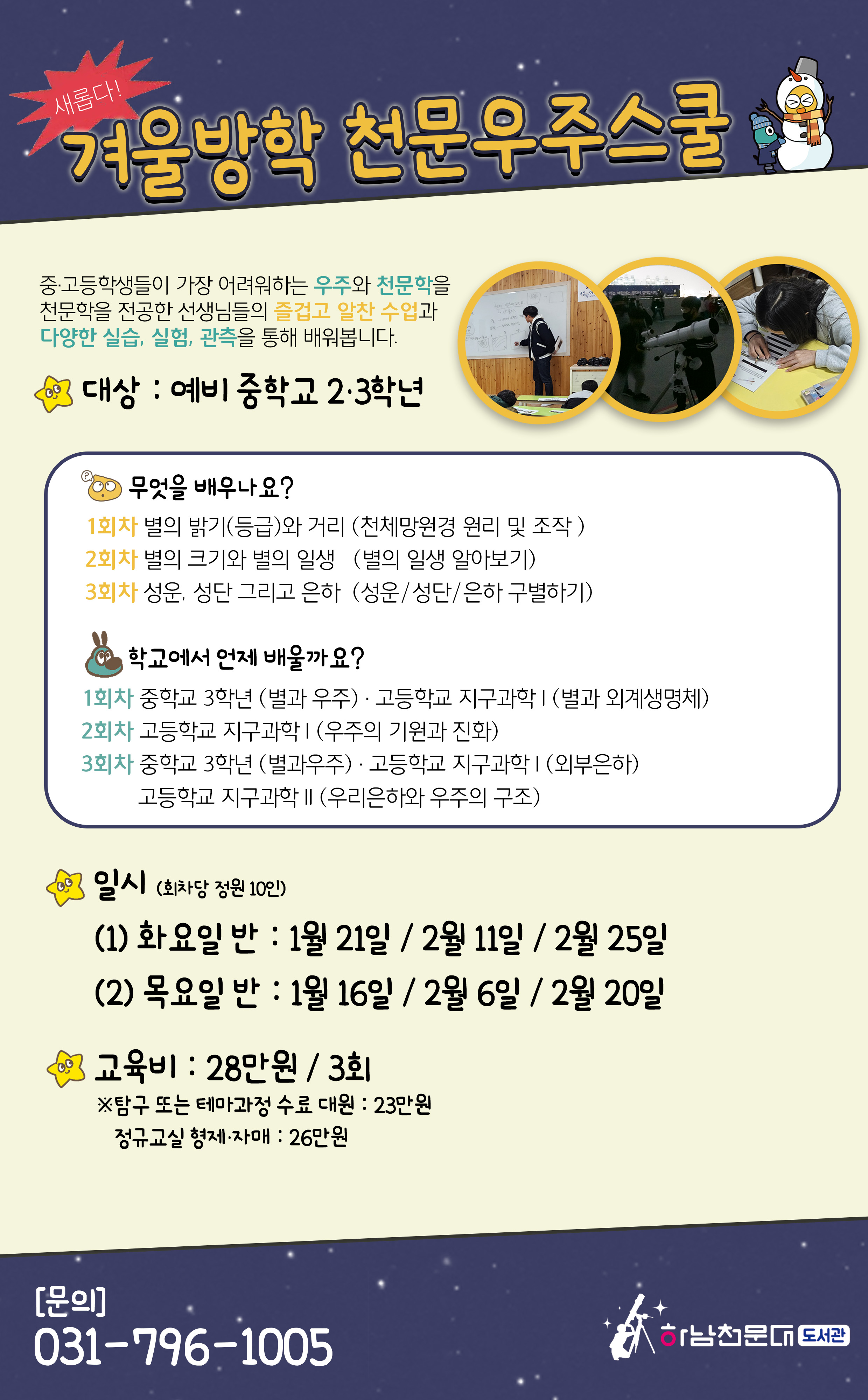 | [하남천문대도서관] 겨울방학 천문우주스쿨 안내 | |||||||||||||||||