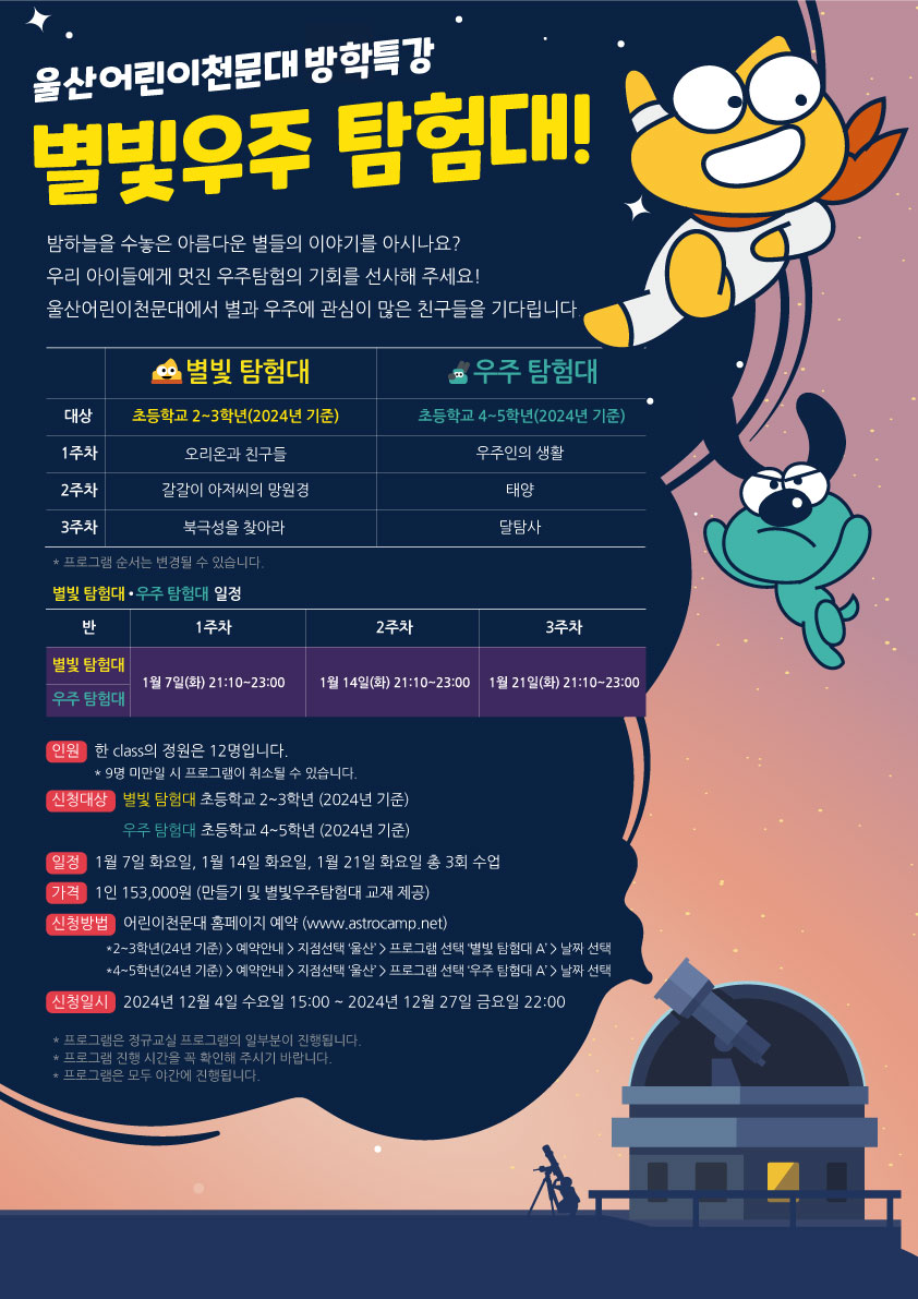 | [울산어린이천문대] 방학특강 별빛・우주 탐험대 | |||||||||||||||||