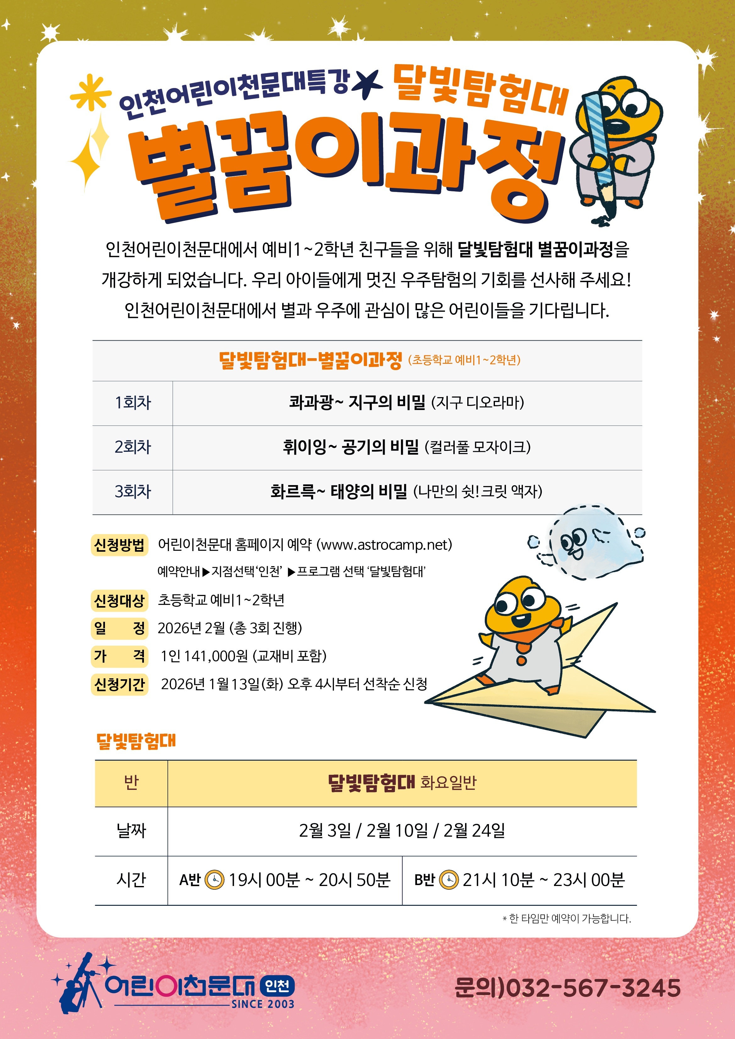 ※ 자세한 상담 및 문의는 인천어린이천문대 (032-567-3245)로 연락주시기 바랍니다.