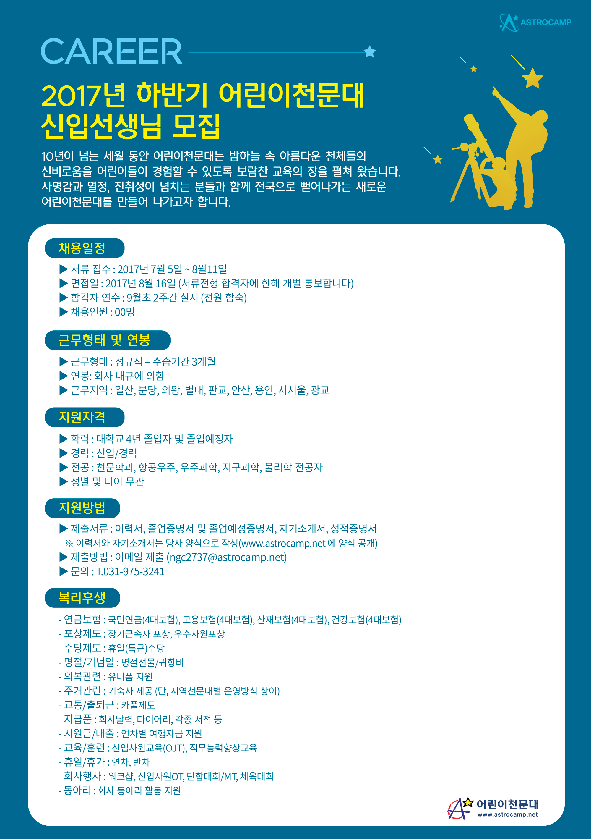 | 2017년 하반기 어린이천문대 공채 | |||||